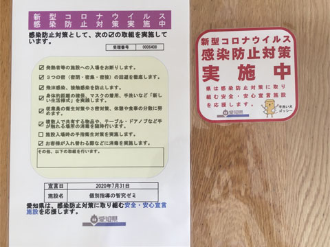 また、教室では換気をしたり、授業と授業の間の時間に消毒をするなどの対応をしています。