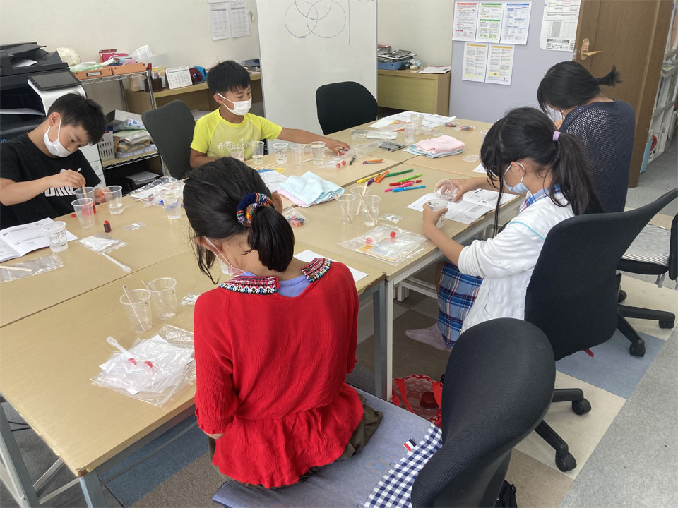 夏休み中に理科実験教室を開講し、みんなに大人気のスライムを作りました。